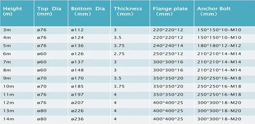 Common Specifications of street light poles