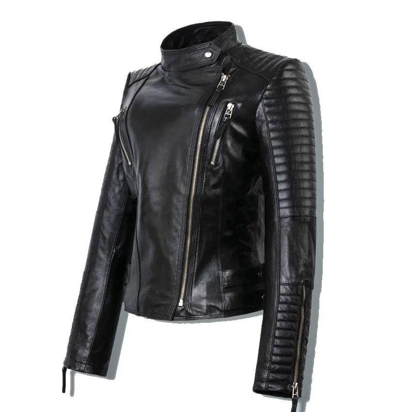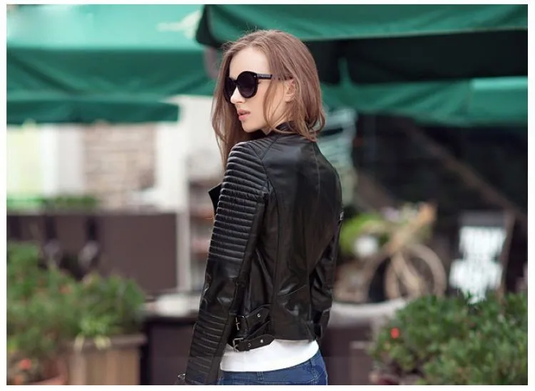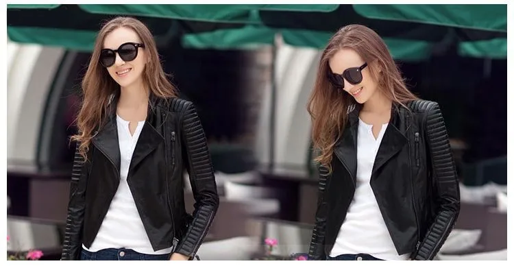 Wholesale Fashion Short Slim Fit Shop Black Synthetic Leather Jacket Women