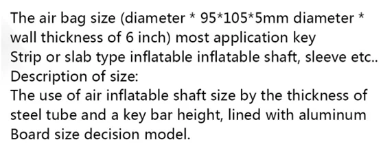 This Rubber tube applicable for different types of air expanding shaft. It is searched and developed according to the application of air shaft. It can be inflated and deflated more than 100,000 times in the air expanding shaft.