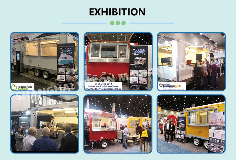 Dimension: L230.00cm x W165.00cmx H220.00cm Weight: 300kg Cart Body: Made by high-tonnage hydraulic press; The material of both sides is fiber glass which has the following characteristics: high strength, light weight, corrosion resistant, insulating, fire resistant; The surface is riveted with fade-resistant double-layer color steel plate with thermal insulating layer, which has the feature of rainproof, sunproof, soundproof and insulation; One lift up window for selling and one entrance door Frame and Chassis: Welded with high-strength steel; The chassis has four strong wheels, two of them can be used to turn and is equipped with high-speed bearings; Four Jacks to fix up and keep stable The inside and outside of the food cart use car paint