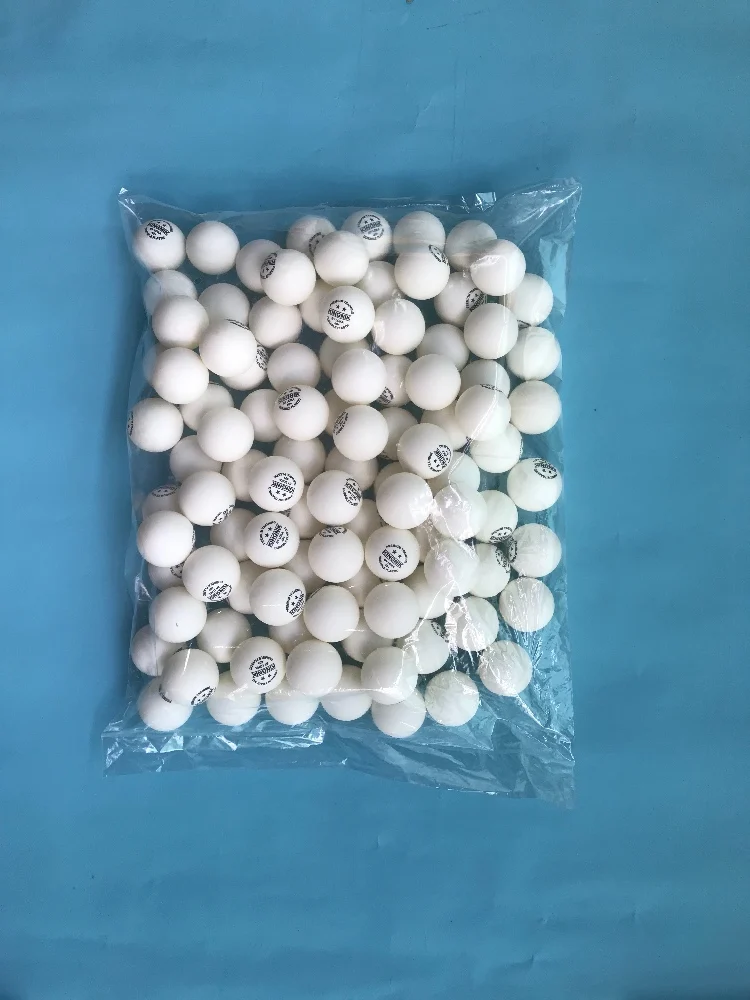 New balls are made of ABS plastic, the new official material for table tennis balls. Traditional balls are made of celluloid and contains components used in dynamite, making them dangerous to produce, to ship and to store. ABS plastic is chemically stable, safe to use and for you to keep at your warehouse or home.