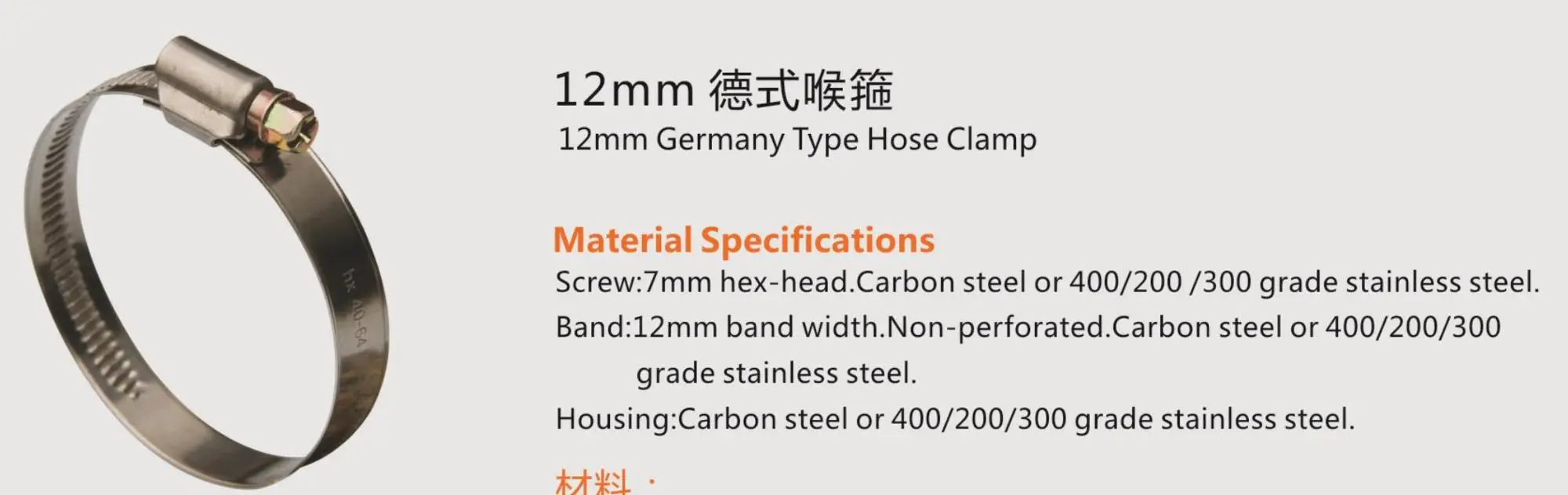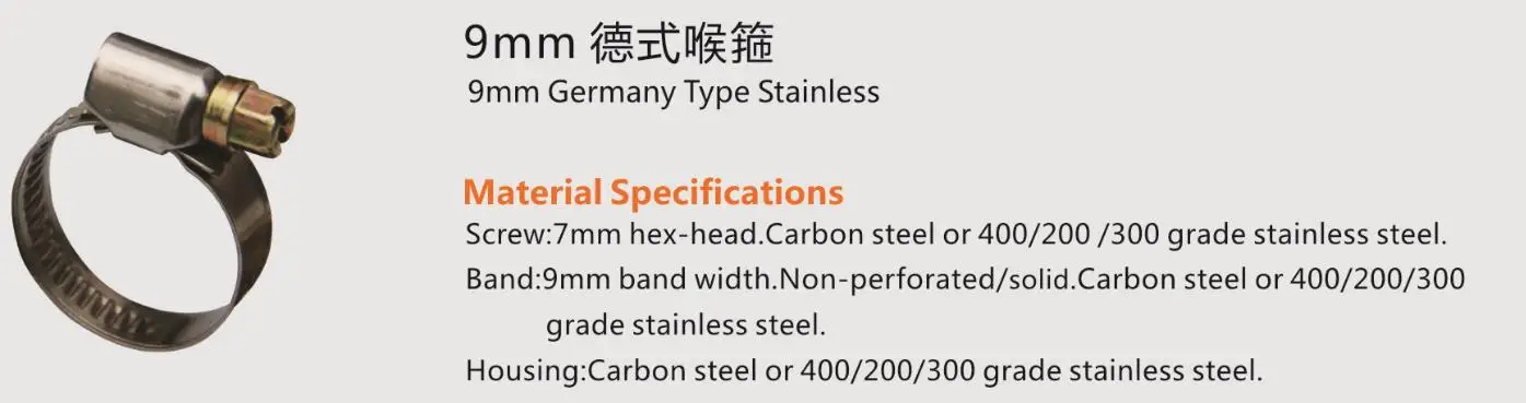 Band: 12mm/9mm band width. Non-perforated. Carbon steel or 400/200/300 grade stainless steel.
