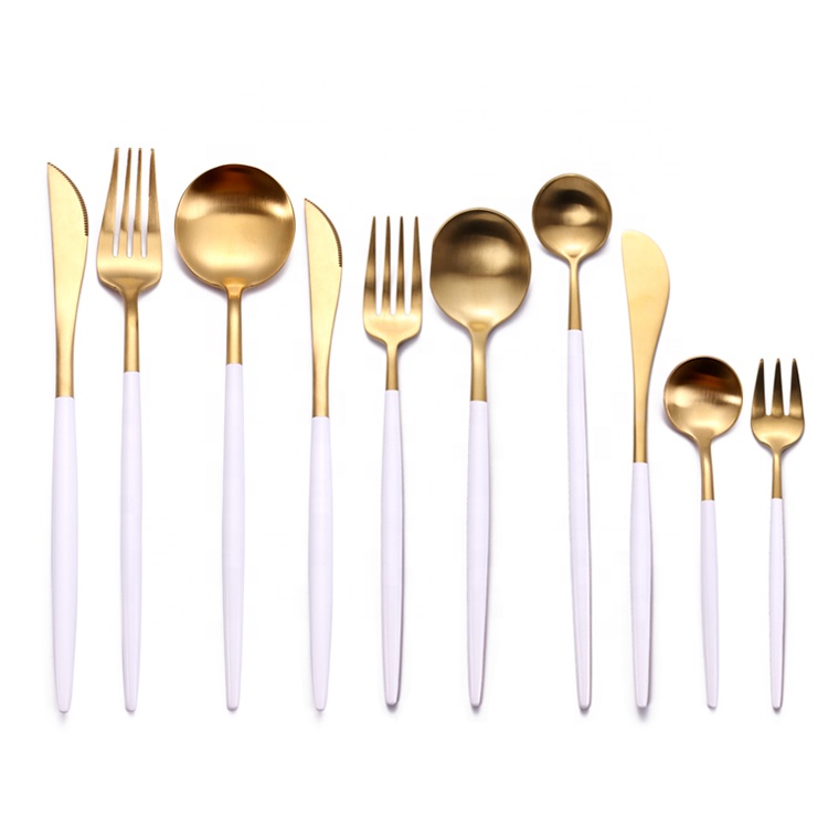 gold cutlery set customized with logo black spoons forks knives stainless steel rose gold flatware gold cutlery