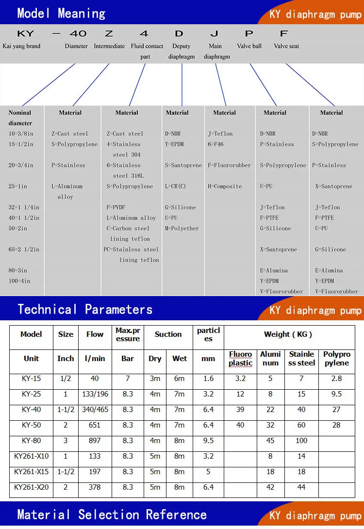 5. The KY aluminum alloy pneumatic diaphragm pump does not generate electric spark or generate and accumulate heat during operation