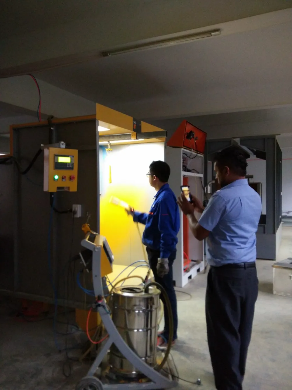 The spray booth uses high-intensity imported maintenance high-quality filter to filter, powder and gas separation. The unique back-blowing device automatically clears the powder and the recycling effect is remarkable.