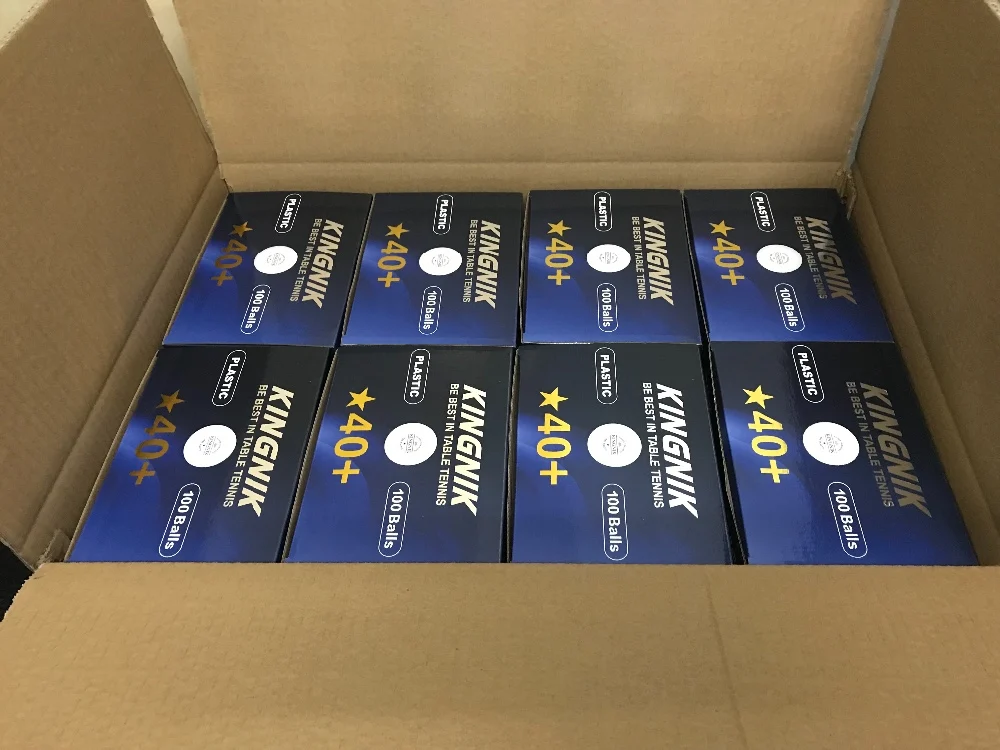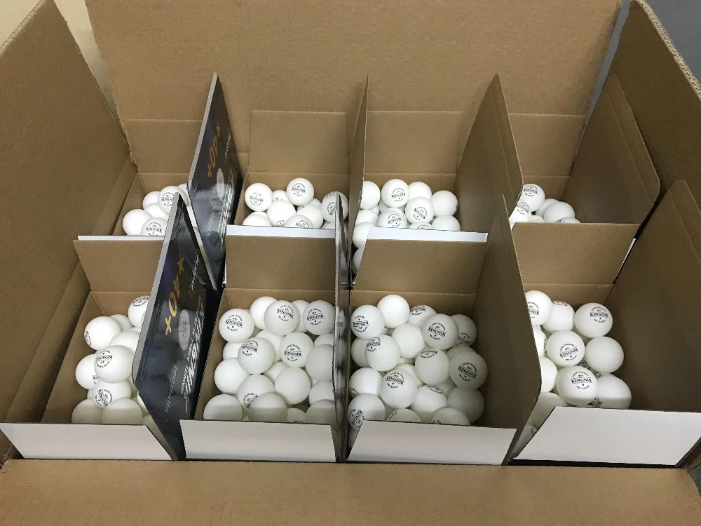 New balls are made of ABS plastic, the new official material for table tennis balls. Traditional balls are made of celluloid and contains components used in dynamite, making them dangerous to produce, to ship and to store. ABS plastic is chemically stable, safe to use and for you to keep at your warehouse or home.