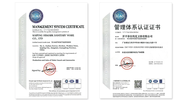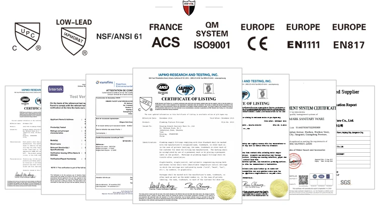 HIMARK is a professional bathroom hardware products manufacturer that provides thermostatic technologies, shower systems, bathroom faucets, kitchen faucets and bathroom accessories and so on. It provides you with the unique, good quality and intelligent of innovative solutions. It owns >1200 international product certifications, such as North American market certification cUPC, health non-toxic NSF/ANSI 61, LOW-LEAD, French market ACS, European market CE, EN817,thermostatic technical specifications certification EN1111. HIMARK will open the market with you hand in hand.