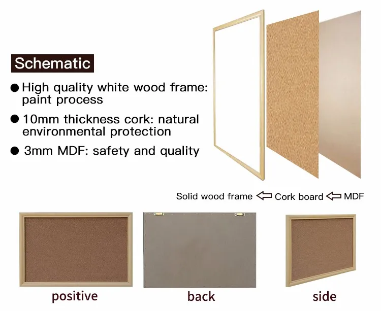 2. Structure of the cord board, 3mm MDF, 10mm cork board, high quality wood frame;
