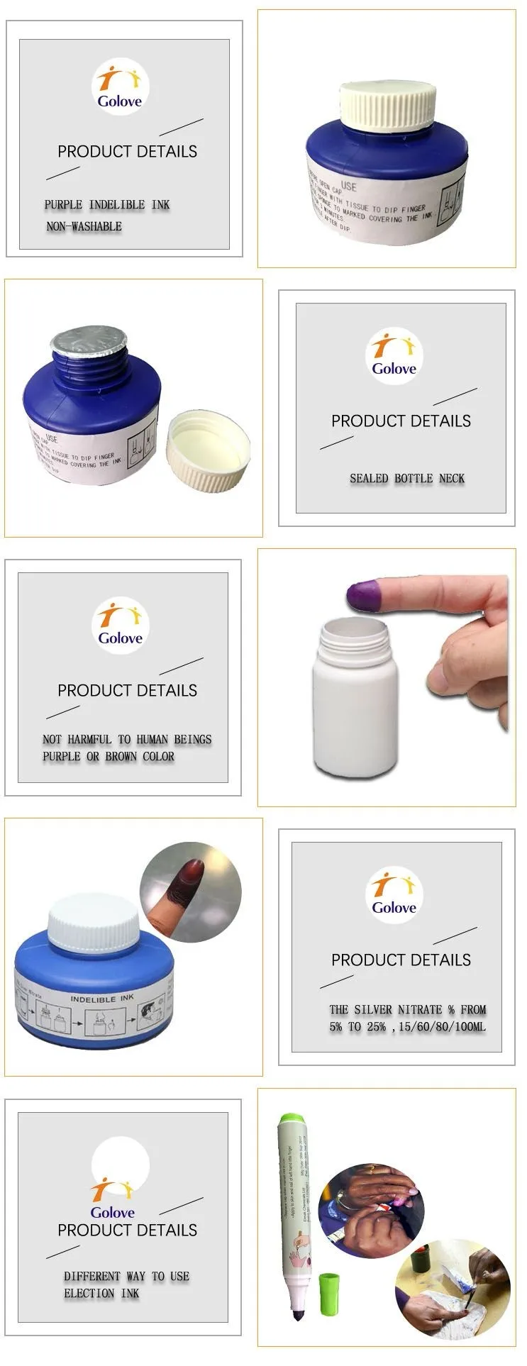 1. We can offer different colors , such as violet ,blue. when the ink tipped on the finger, turn to brown color.