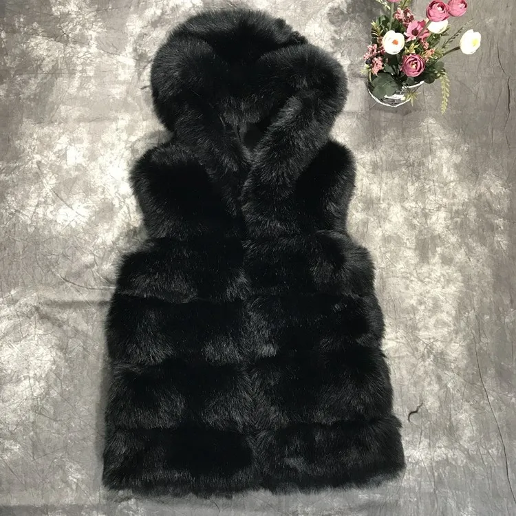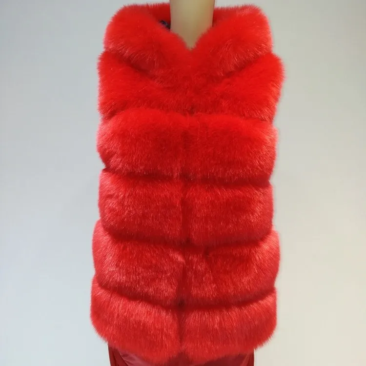 Regular length colored vest factory supply faux fur lady's coat