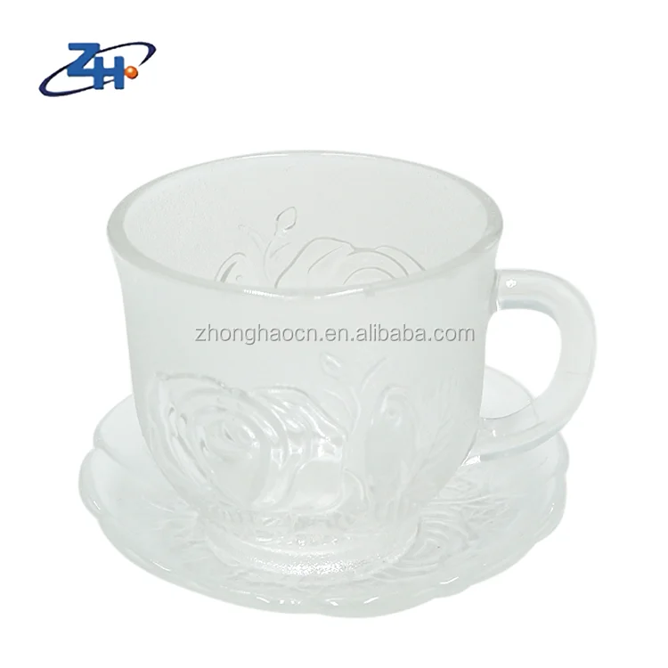 Product name | Hot sale rose embossed pattern glass coffee tea mug with saucer |