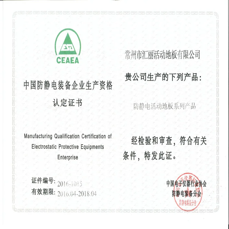 Changzhou Huili Access Floor Co., Ltd., as a high-tech manufacturing company in Jiangsu, is an expert-oriented professional access floor manufacturer, integrating and design, sales and distribution. At present, it has established two large-scale modern manufacturing bases in Changzhou and Shandong. Huili factory covers an areas of 400 acres, of which the workshop area is around 900,000 squaremeters with more than 500 workers. The annual production capacity of various access floors has exceed 4 million square meters.