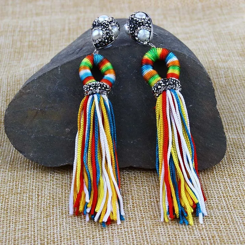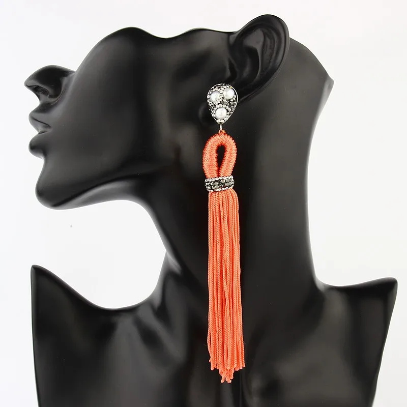 Item | Wholesale Latest Design Bohemian Handmade Crystal Long Tassel Stud Earring |
