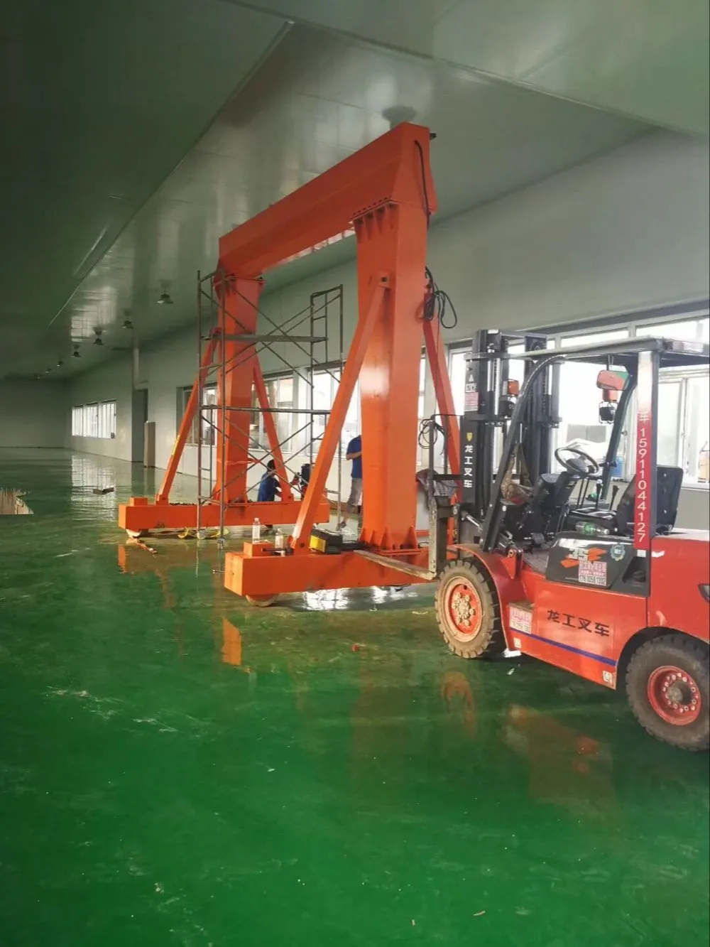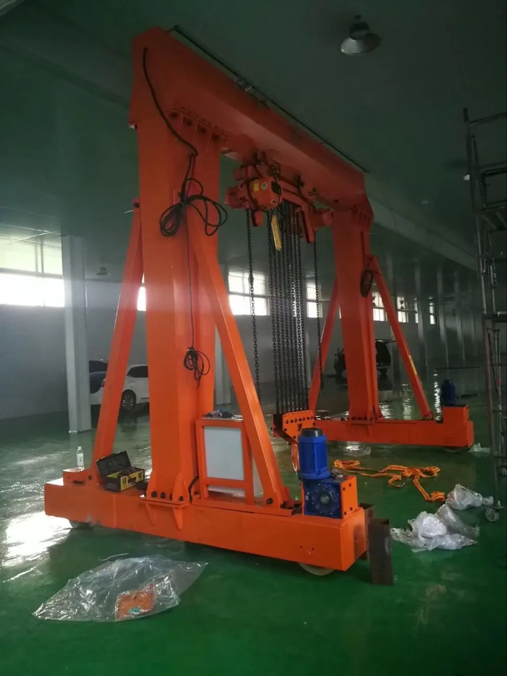 This kind gantry crane moves by hand pushing ,not electric