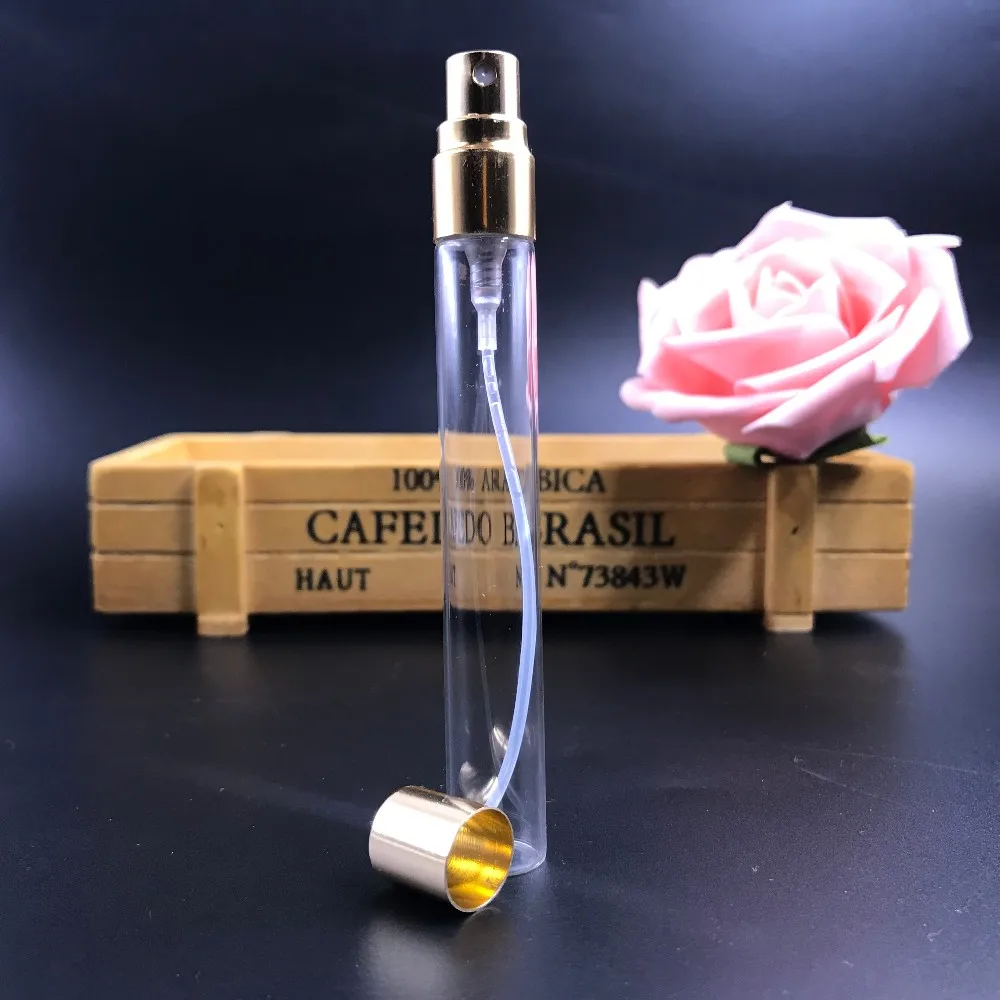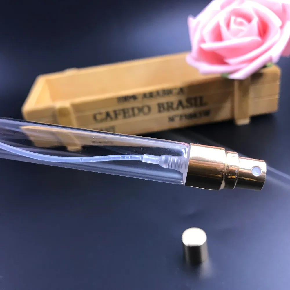pocket tube fine mist spray pump 10ml perfume glass bottle factory with golden sprayer