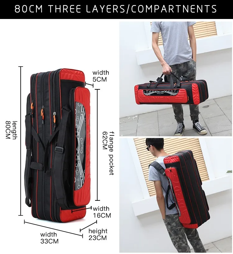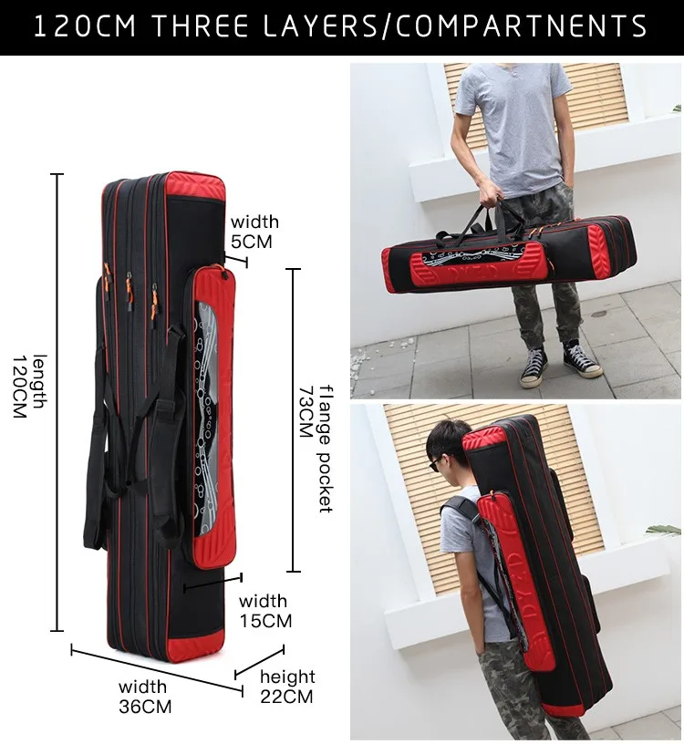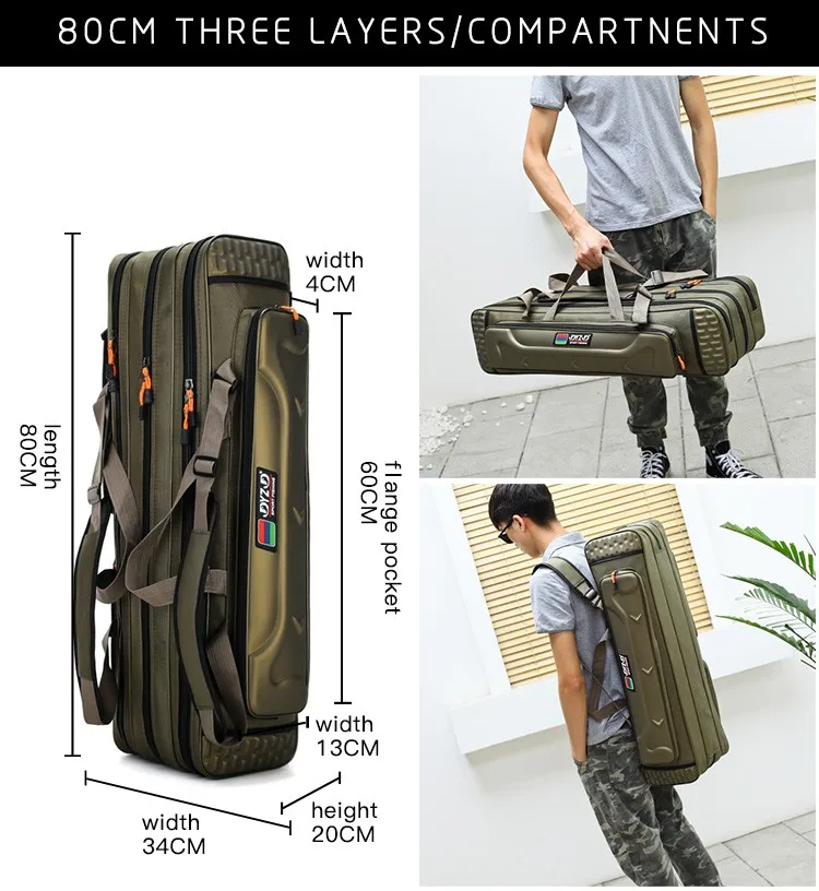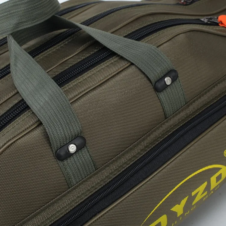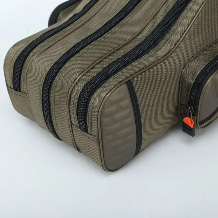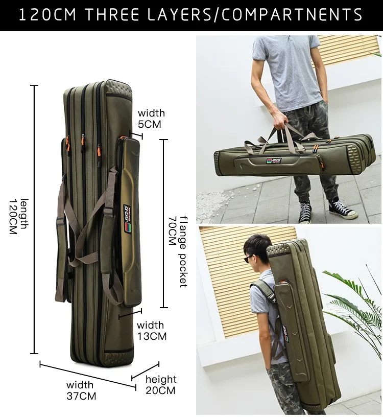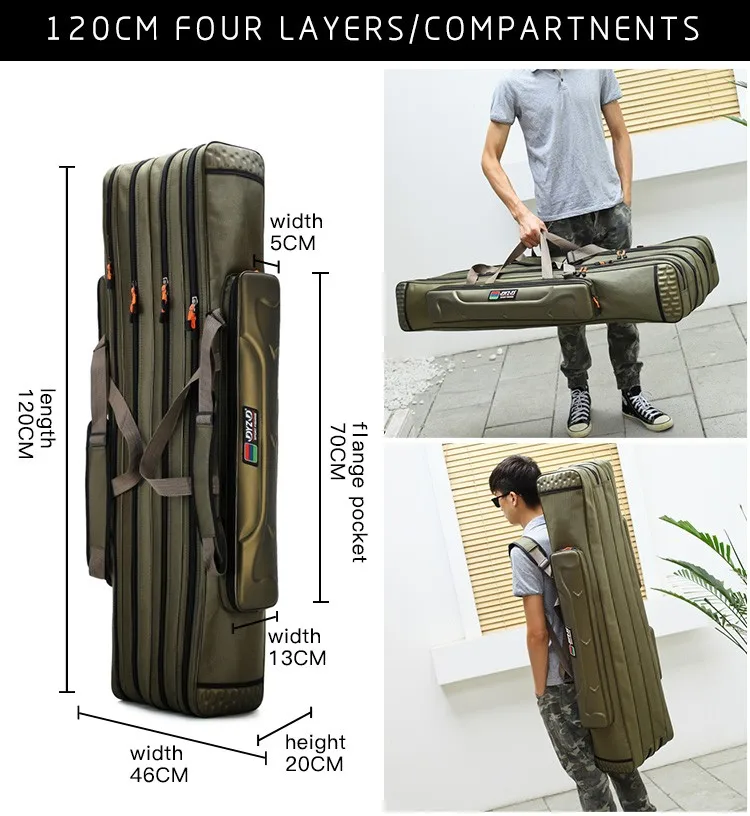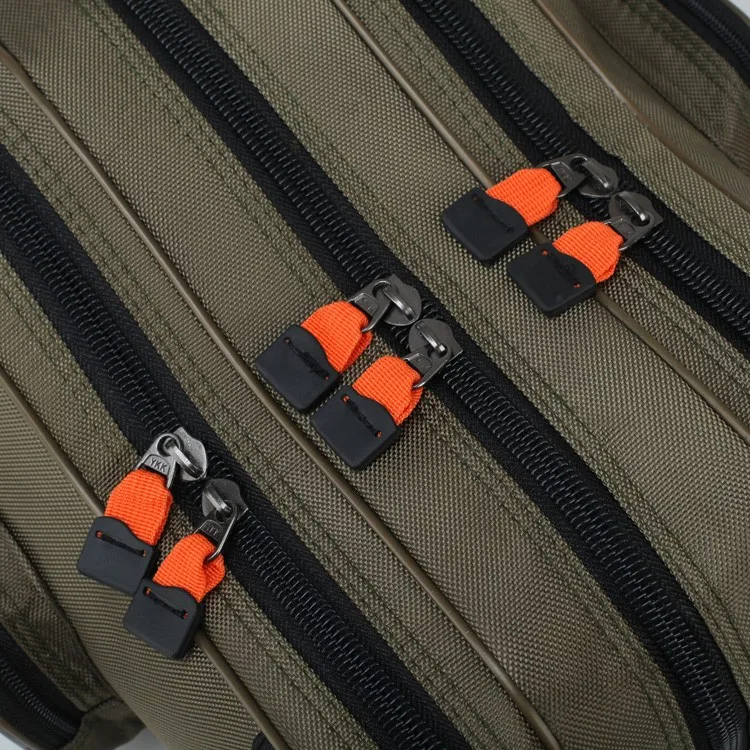 3 layers camouflage canvas waterproof spacious wheel mounted folding fishing rod bag