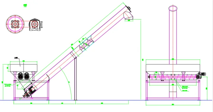 Screw conveyor body uses galvanized steel/carbon steel/stainless steel, strong structure,easily operate.