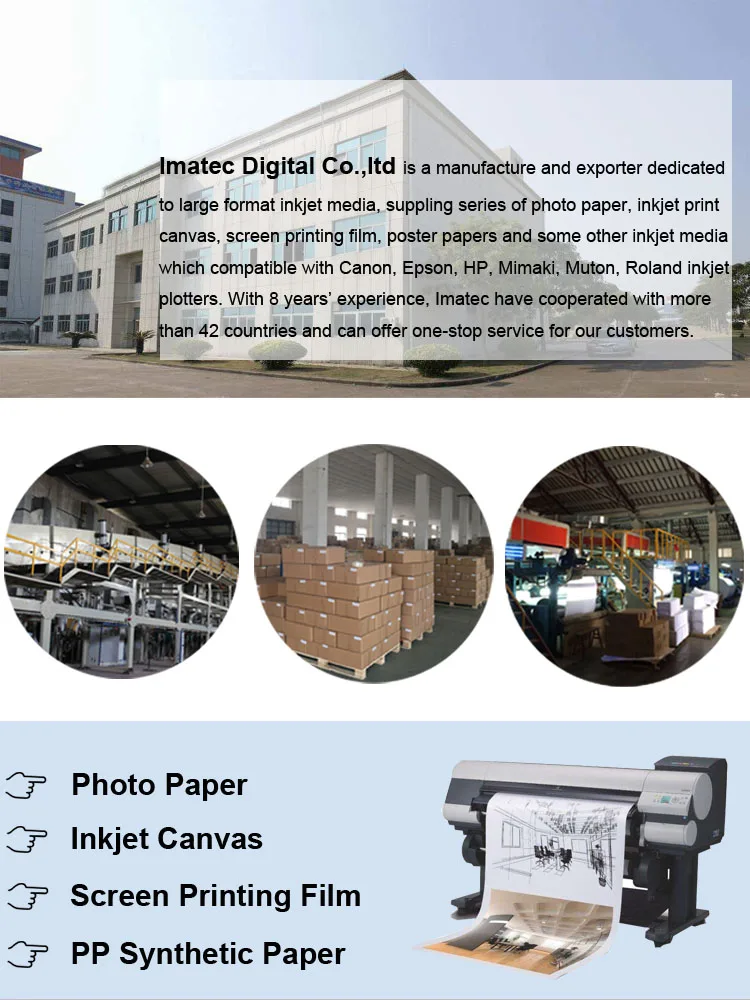 Contact Person:Elaine Tel/Whatsapp/Wechat:+86 17327888260 Skype/Instagram:Elaine Sun Email:sale at imatecdigital.com | Our Website: printmedia.en.alibaba.com imatecolor.en.alibaba.com www.imatecdigital.com www.inkjetprintmedia.com | ||||
