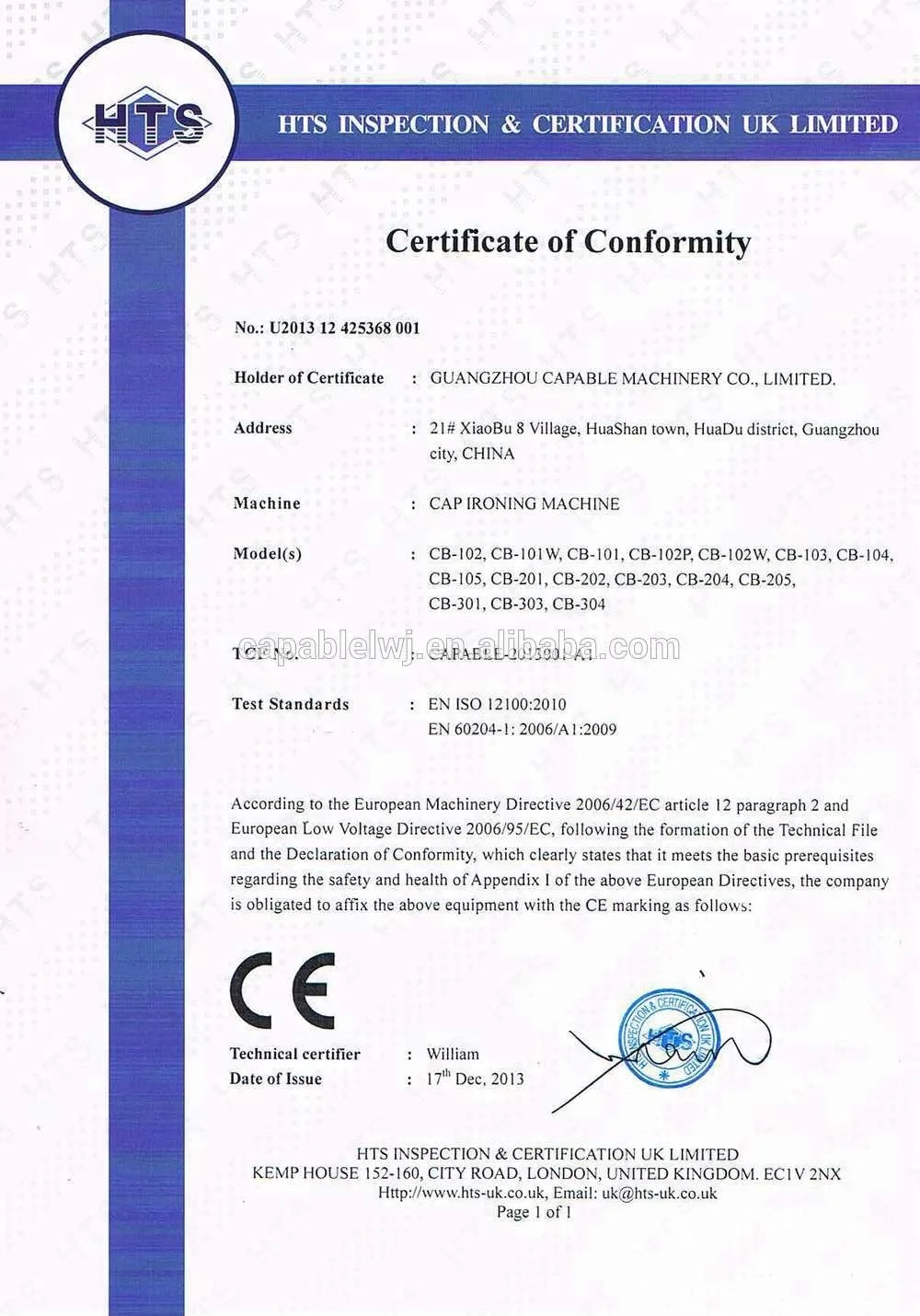 C1: Please refer to our website for details: (Guangzhou Capable Machinery CO ., LTD)