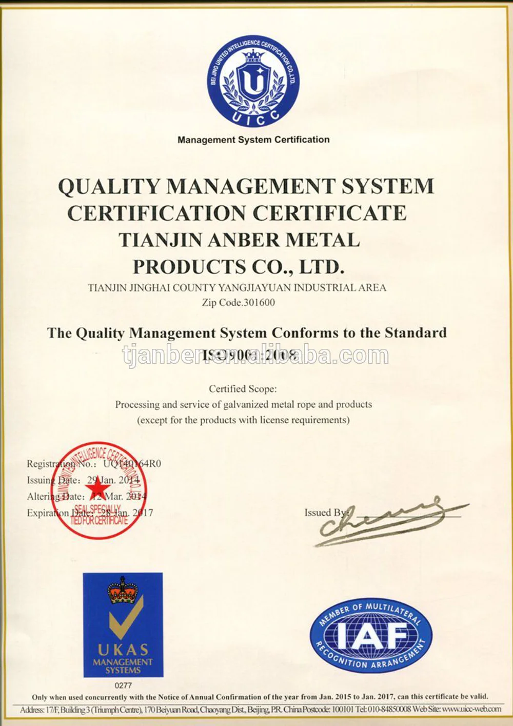 Certificate :ISO 9001:2008