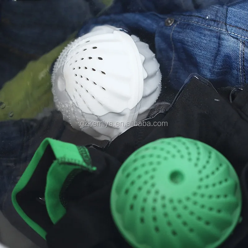 The negative ion ceramic washing ball, using the biological activated ceramic material, emanates far infrared and negative ions, activates the water molecules, softens the water and increases the surface area of water, greatly improves the decontamination ability of water, quickly takes away from the dirt of clothes, and increases the natural solubility of water through the unique water treatment. After washing, the clothes are clear and bright, clean and sterile, and achieve the effect of deep cleansing.