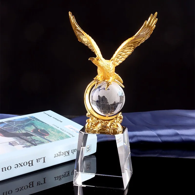 Golden Eagle and Globe Crystal Base Metal Trophy Cup