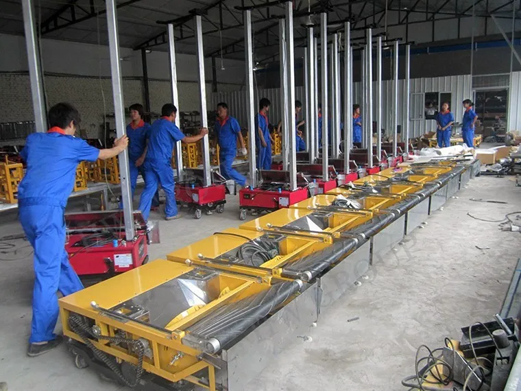 Automatic wall rendering machine is the ideal equipment for residential buildings, office buildings etc.It can plaster on cement wall, brick and concrete wall, hollow wall , light body brick, baking free brick wall etc.The rendering material could be lime, cement mortar , foam mortar, gypsum etc.The rendering thickness is no more than 3 cm and the height could be up to 5m. It could be adjust different thickness to suit each operation.