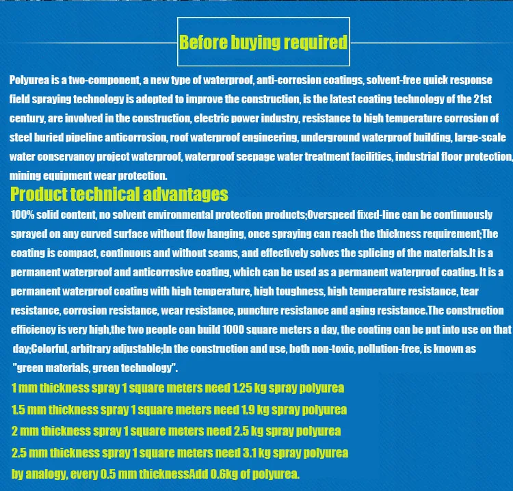 PRODUCT NAME: Polyurea waterproofing coating used in building concrete/EPS foam/metal roof