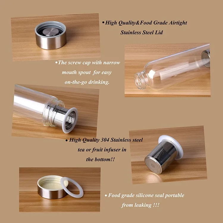 Name | Hot sale borosilicate glass bottles with filters and protective cover |