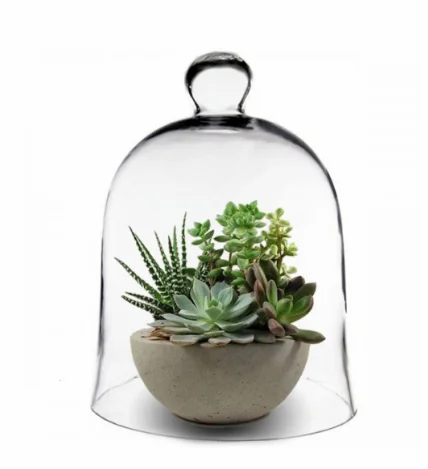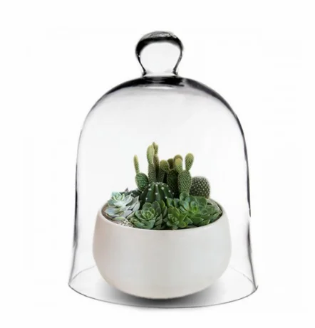 Glass cloche domes were originally created to protect seedlings or delicate flowers from adverse elements. They have since been widely used as plant terrarium containers or as dessert display covers. You may incorporate this cloche with unique artistic displays of any kind. Nowadays, more and more wedding decorators are favoring glass cloche covers as part of the table setting decor. Try placing single flower stems for enchanted fairy tale themed weddings. This clear glass cloche is also the perfect item to place with different types of cake stands or trays