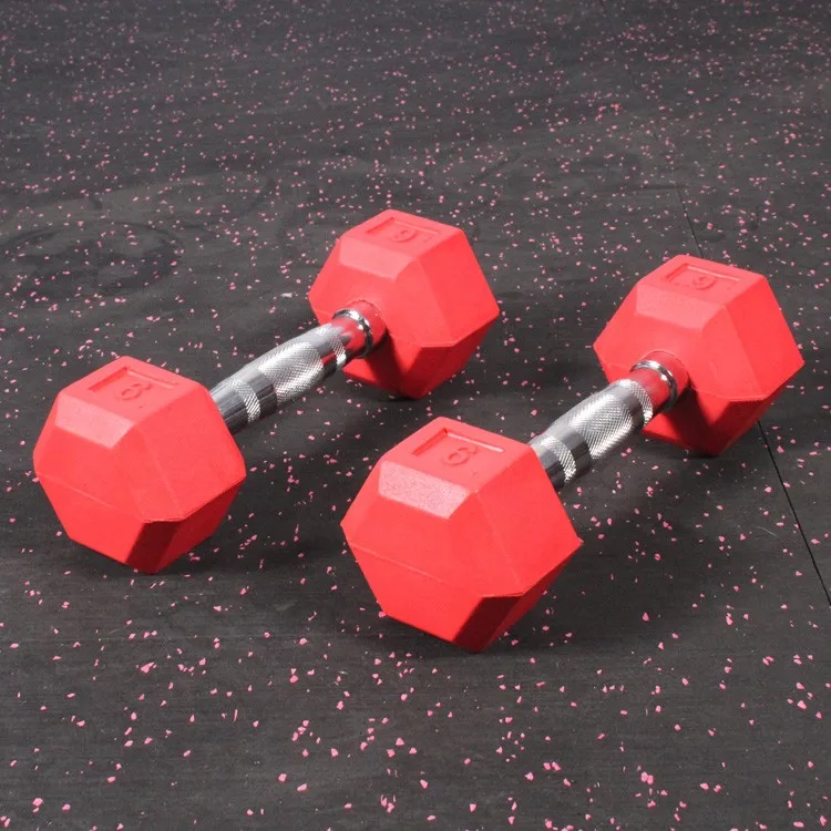 Body-Solid Rubber Encased rubber coated cast iron hex dumbbell set