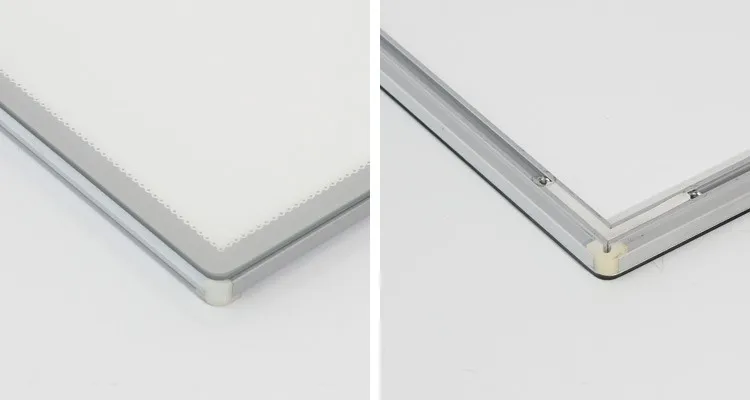 The frame of the Picture Insertion Light Box are made of aluminum by customized mold, it's sturdy & durable. And the four corners are spliced by plastic fillet components, so it is safer without injuring hands.