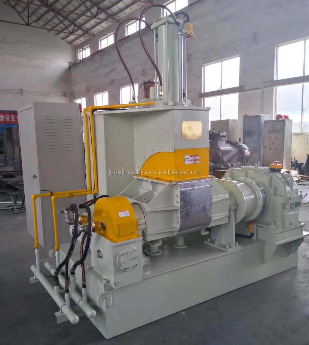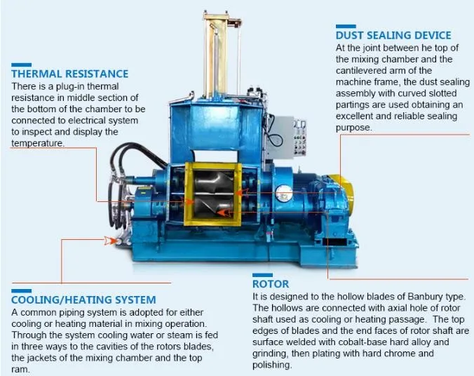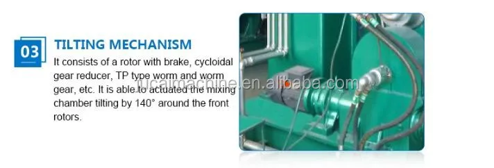 The series of rubber kneader machine is a type of dispersion kneader, consist of pneumatic control system, electric control system, tilting mechanism, mixing chamber, main driving system, dust sealing device, thermal resistance, rotor and cooling/heating system. You can choose the right model according to your needs. Below is the main technical parameters of the models