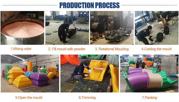 | Materical | a.Plastic parts: UV Resistance LLDPE imported from South Korea b.Post: Galvanized steel pipe with diameter of 114 mm c.Metals: Galvanized steel d.Deck, stair, bridge: Steel with plastic covered e.Fasteners: 304 Stainless f.Platform:2.2 mm thick cold-roll steel sheet |