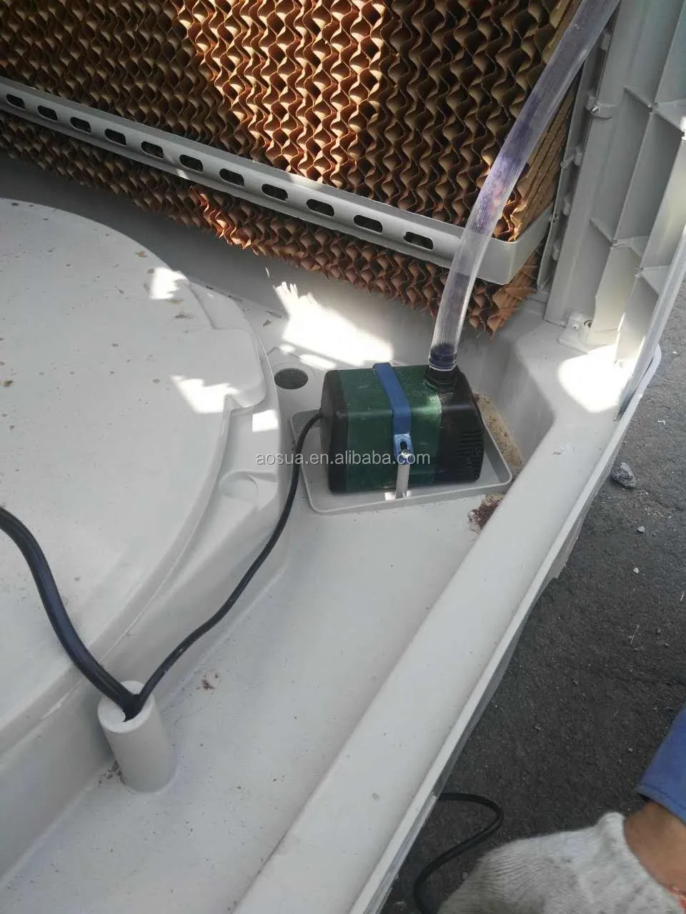 Aosua evaporative coolers is one of the longest history home appliance, even elder than air conditioner.It is called desert cooler in Middle East,and also is called swamp cooler in US. The frame of evaporative cooler is very simple.Water from the bottom pan of the unit is pumped to the top and allowed to flow down over the evaporation cooling pads of the spot cooler,evenly saturating the pads,Then, a powerful blower pulls air through the pads,forcing the water to evaporate which lowers the ambient temperature.The cooler air is then blown by the unit at a high velocity where you direct the cool air to go.