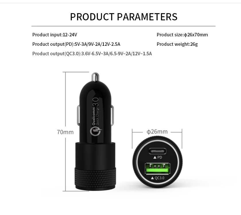 Output voltage: PD 18W+QC 3.0 3.6V-6.5V 3A/6.5V-9V 2A 12V 1.5A
