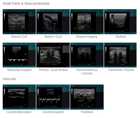 Abdomen, Obstetrics, Gynecology, Endovaginal, Small Parts, Muculoskeletal, Vascular, Urology, Endorectal, Cardiology, Pediatrics