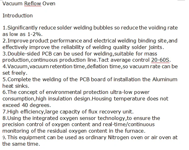 SMT High-end IGBT 8 Heating Zones PCB Vacuum Reflow Oven-high efficiency,low void ratio