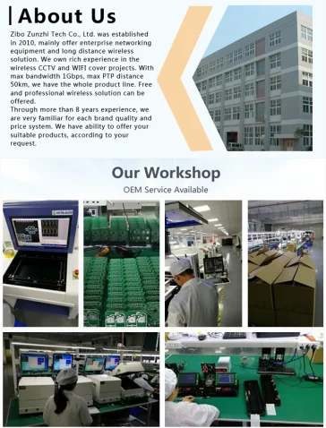 Zibo Zunzhi Tech Co., Ltd. was established in 2010, mainly offer enterprise networking equipment and long distance wireless solution. We own rich experience in the wireless CCTV and WIFI cover projects. With max bandwidth 1Gbps, max PTP distance 50km, we have the whole product line. Free and professional wireless solution can be offered.