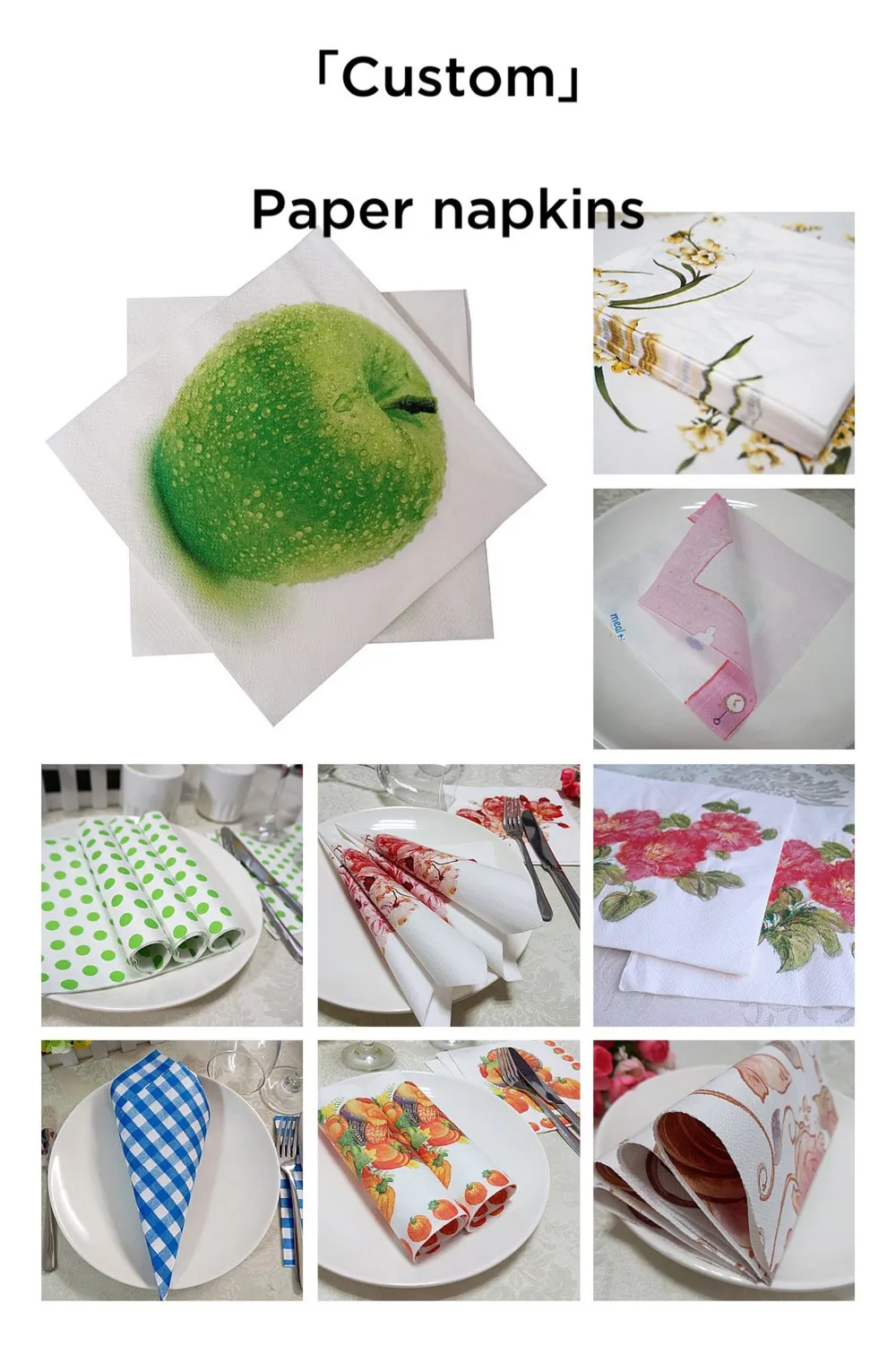 1. Large range of napkins (regular shaped, pre-folded, die-cut, foil napkins and so on)