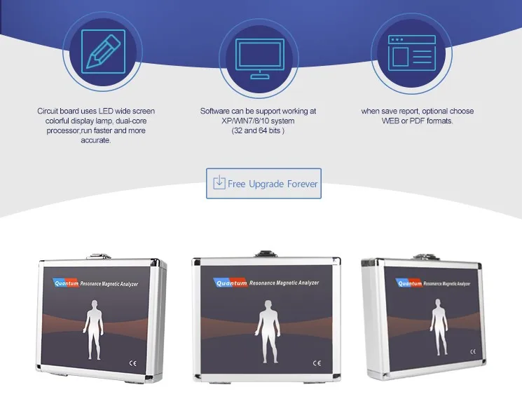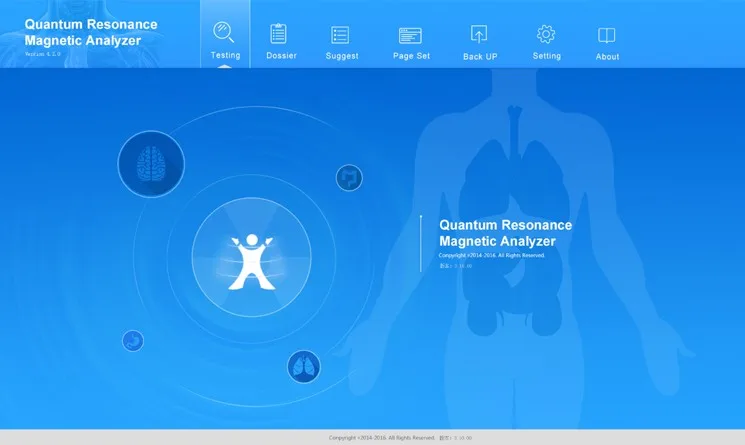 Quantum resonance magnetic analyzer using touch sensor to detect huamn beings magnetic change. Our body is a big balance circulation during healthy. Once we being sick or sub-health situation, the balance will be broken. QRMA could detect this kind of unbalance. then comparing with data base to give result. Software transfer those date become type so that we can read.
