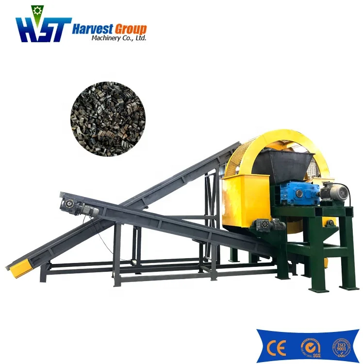 Waste tire recycling production line process: Tire debeader Machine--Tire Cutter --Conveyor--Tire shredder--Magnetic Separator --Nylon fiber separator--Rubber powder