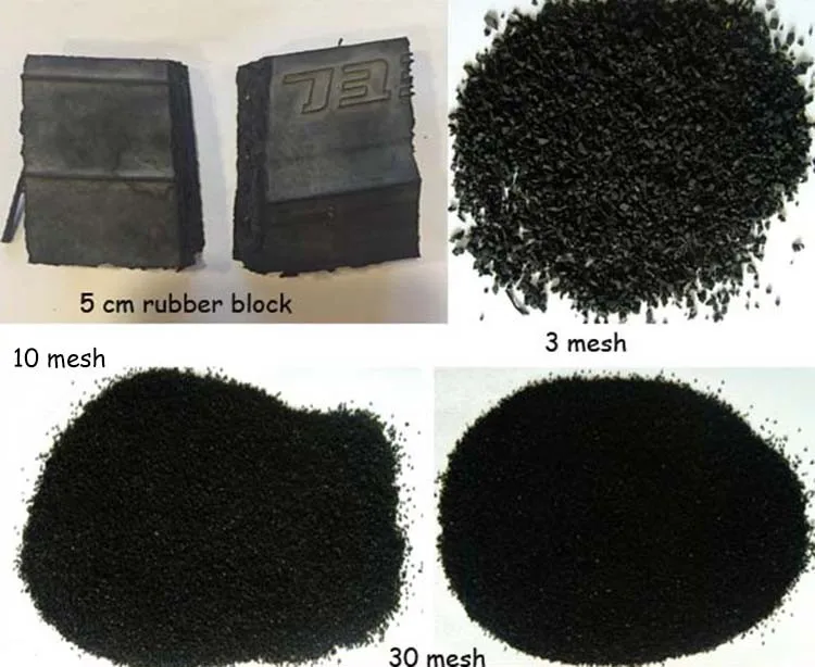 Function: crushing the rubbers into rubber powder in different size