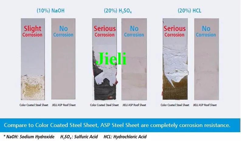 JIELI ASP Steel Sheet have no any Shrink, Crack, Spalling and Fade, under temperature 100°C environment.