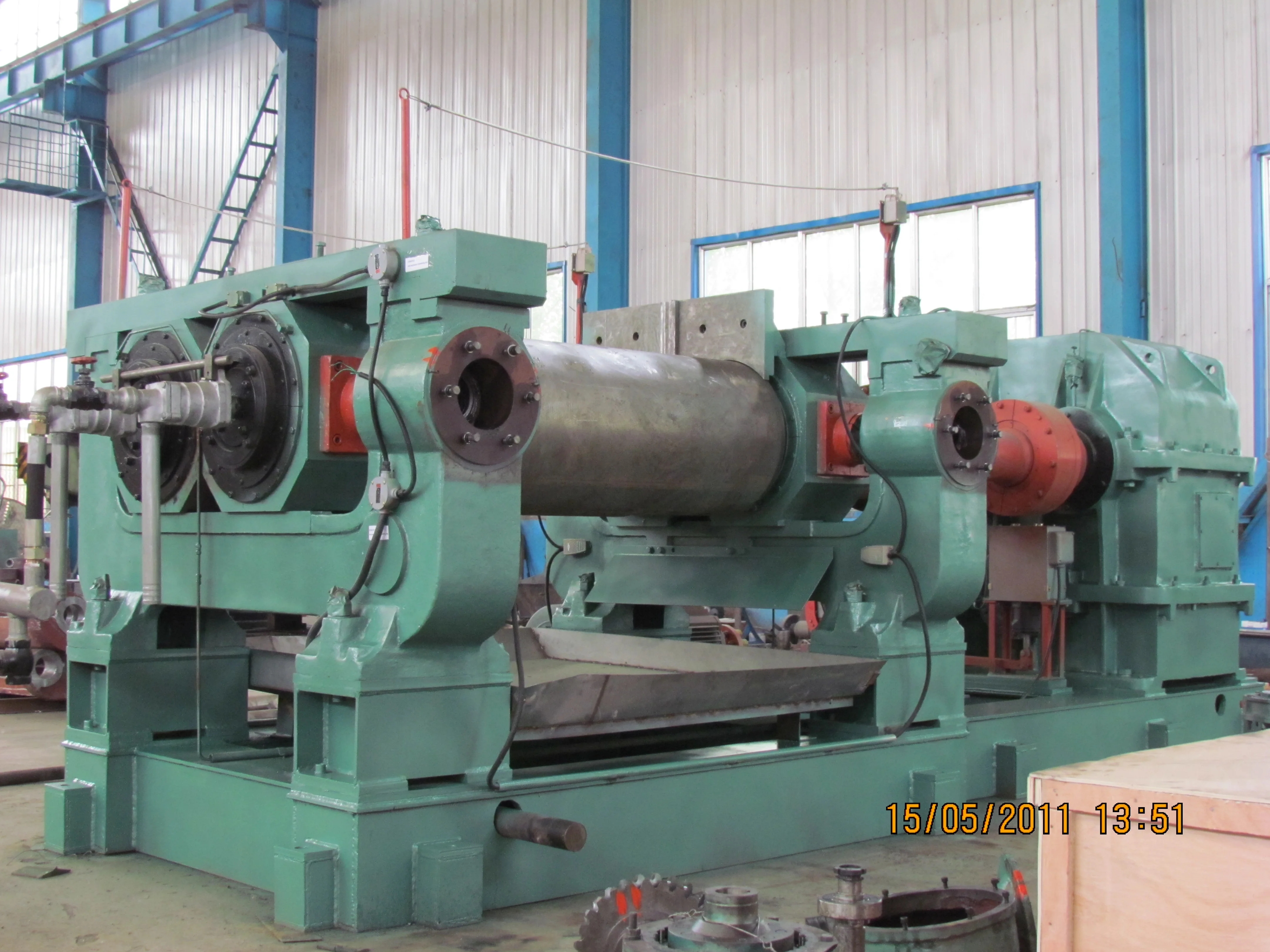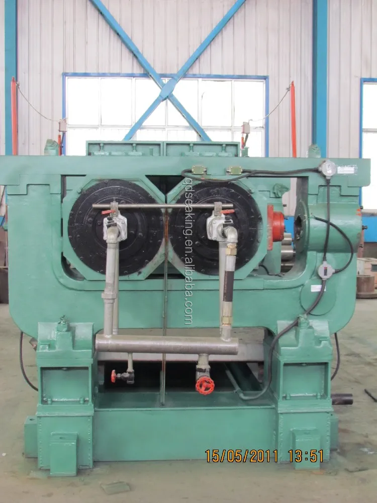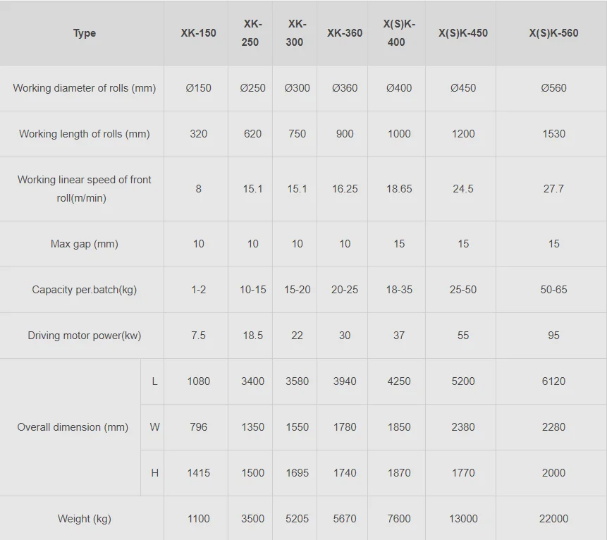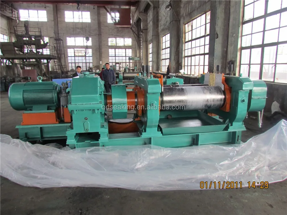 2.The roller, with smooth surface after polished,is made of chilled cast iron. Steam and cooling water can be inputted in the empty roller to adjust temperature of roller. Two rollers rotate reversely with different speed, so that rubber materials are drawn into the gap of the two rollers for processing.