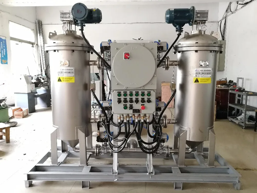 AFE filter is equipped with automated cleaning control system, integrated differential pressure cleaning and timing cleaning parallel control function, which controls its efficient working, according to the operating conditions. If necessary, the system is able to realize real-time and remote monitoring of DCS by custom.Differential pressure cleaning is the most efficient cleaning mode, which reflects the accumulation of of filter cakes and the blocking of the filter element. When the preset pressure differential is reached, it starts the self-cleaning action. It is suggested that the cleaning pressure differential is 0.1MPa, which can be adjusted within the scope of 0.01-0.1MPa, by the working conditions. Periodically cleaning can be set 0-24 hours, and if the differential mode is inefficient, time pattern still works. It can be considered as the ultimate protection. The cleaning period setting should be close to the average period of the filter pressure differential cleaning mode.