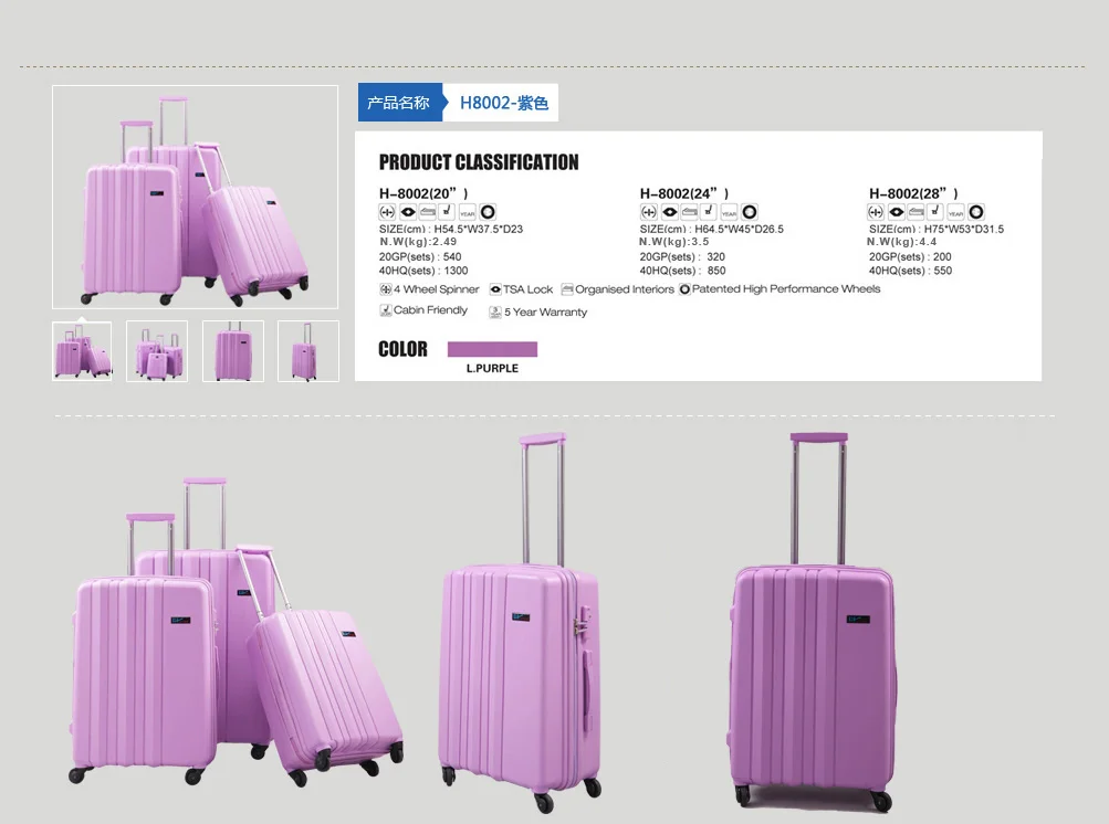 ABS/PC/PP Luggage Hard Suitcase Colourful Travel Trolley Luggage Bags woman rolling travel luggae set