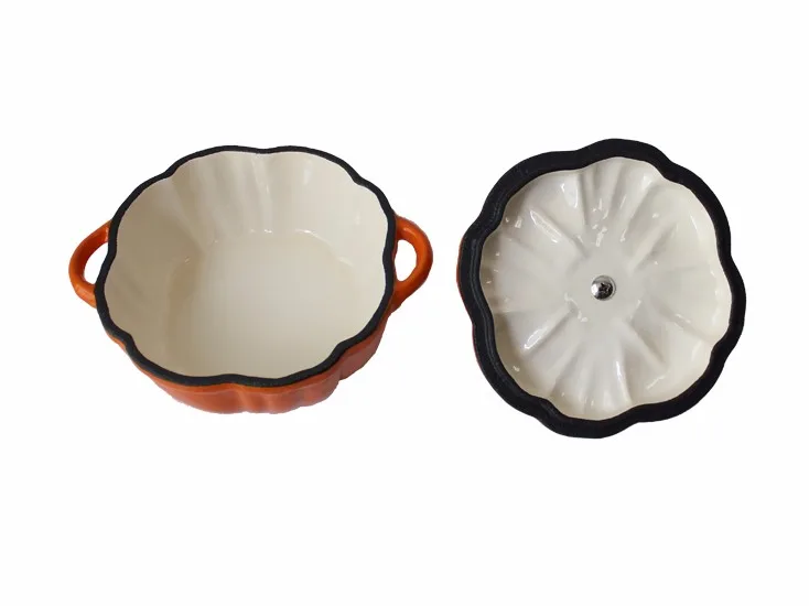 2. Easy Cleanup - The glassy coating of enameled cast iron makes cleaning it even easier than traditional cast iron cookware. Just use hot, soapy water and rinse thoroughly. In fact, many styles of pumpkin shaped casserole set are even dishwasher-safe.