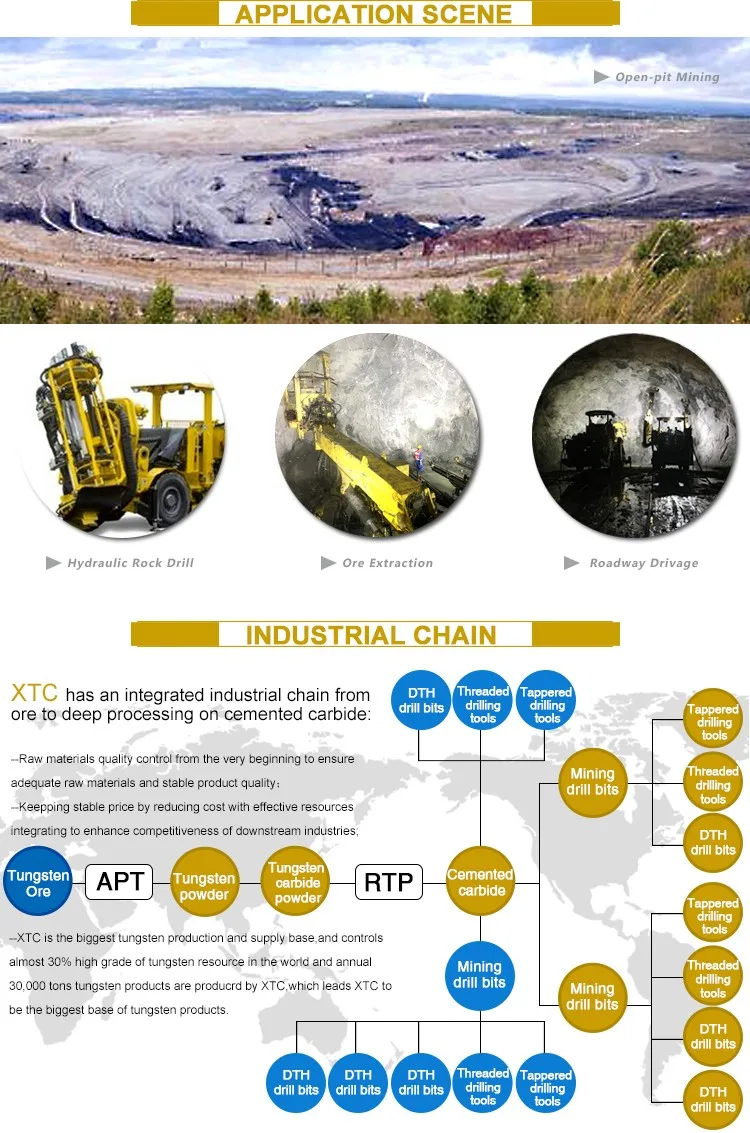 GEOTOOLS'threaded drill bits include general,retrac and reaming three series,with stronger button-fixing ability,longer service life,better wear-resistance and impact-resistance performance,widely used in tunneling,underground mining,open pit mining,anchoring and other large-scale construction projects.