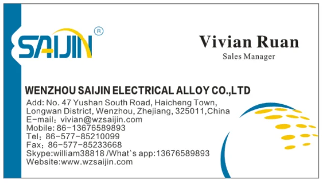 Wenzhou Saijin Electrical Alloy Co., Ltd has our own manufacturing base to supply series of Electrical contact rivets: such as solid contact rivet, bimetal rivet, tri-metal rivets and other special contact.